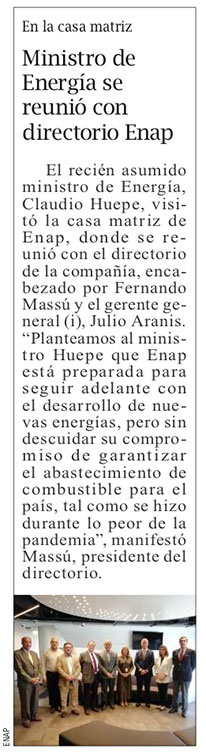 Ministro de Energía se reúne con miembros del directorio de Enap - (Diario Financiero)