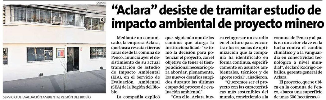 Aclara desiste de evaluación ambiental por tierras raras - (El Sur)