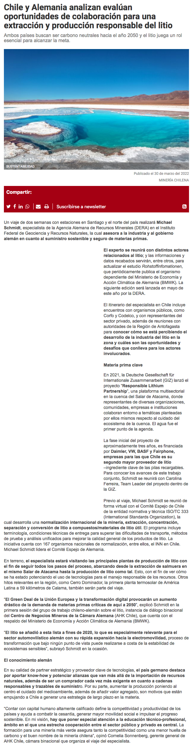 Chile y Alemania analizan evalúan oportunidades de colaboración para una extracción y producción responsable del litio - (electromov.cl)