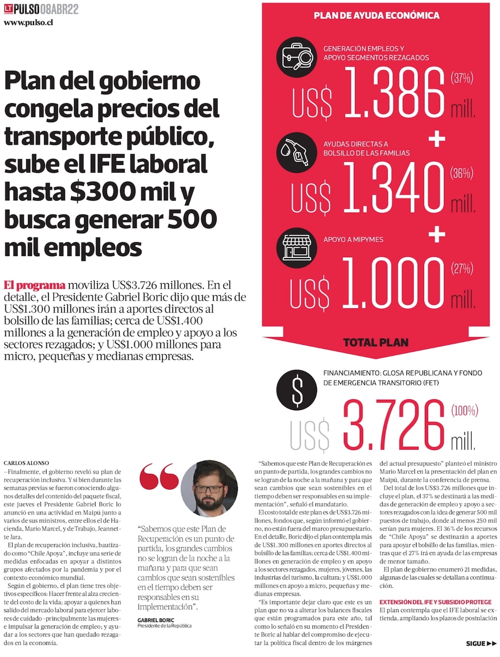 Plan de recuperación incluye 21 medidas que suman US$3.726 millones - (La Segunda)