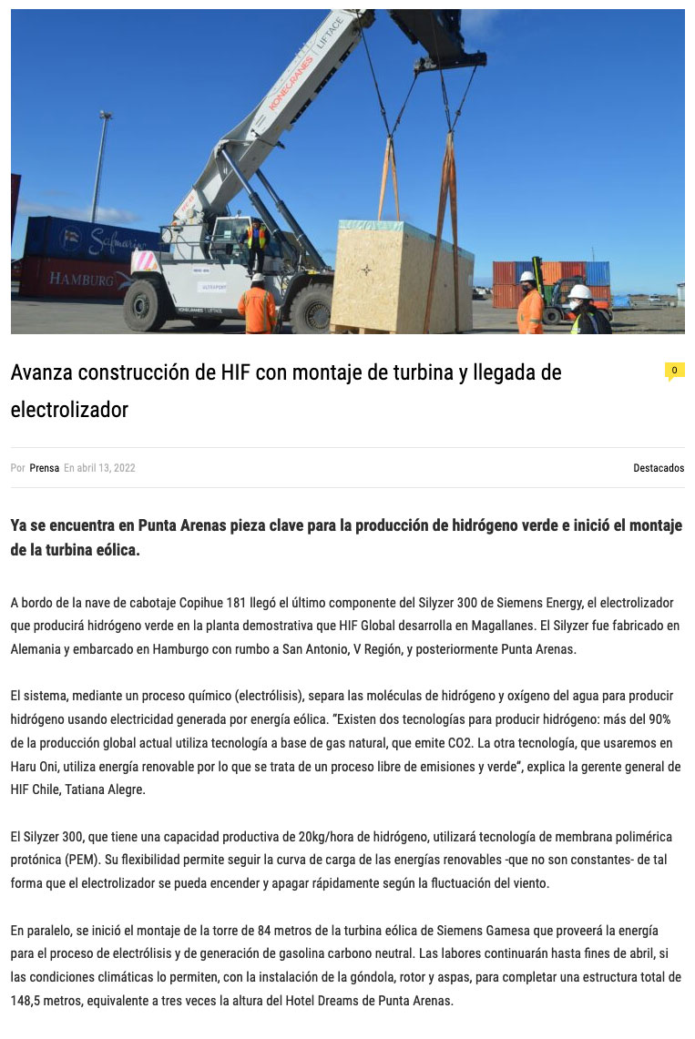 Avance de planta HIF cumple valiosos hitos - (El Pingüino)