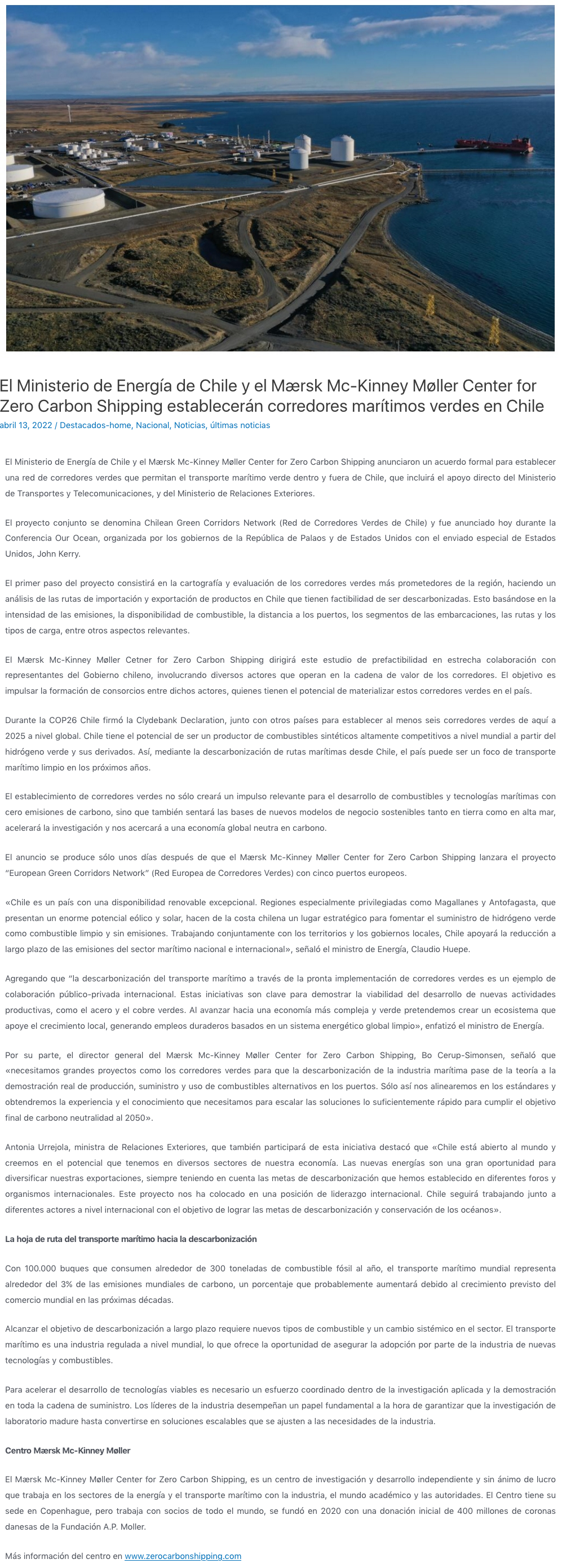 Chile firma alianza con Maersk para el desarrollo de corredores marítimos verdes - (portalportuario)