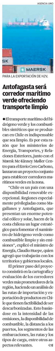 El Ministerio de Energía de Chile y el Mærsk Mc-Kinney Møller Center for Zero Carbon Shipping establecerán corredores marítimos verdes en Chile - (h2news.cl)