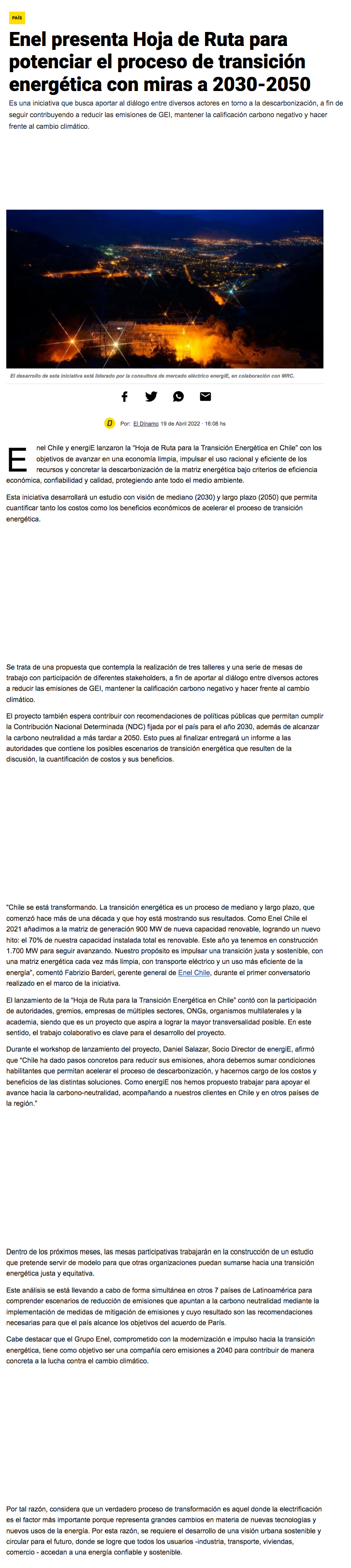 Compañía eléctrica presenta hoja de ruta para potenciar el proceso de transición energética con miras a 2030-2050 - (El Mostrador)