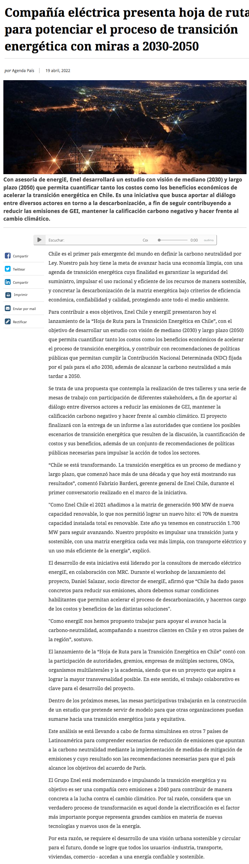Enel presenta Hoja de Ruta para potenciar el proceso de transición energética con miras a 2030-2050 - (eldinamo)
