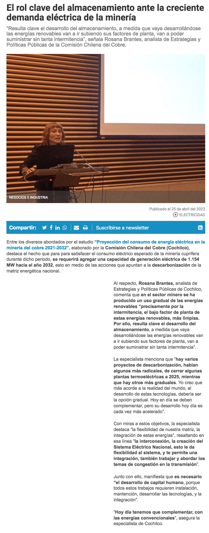 El rol clave del almacenamiento ante la creciente demanda eléctrica de la minería - (mch.cl)