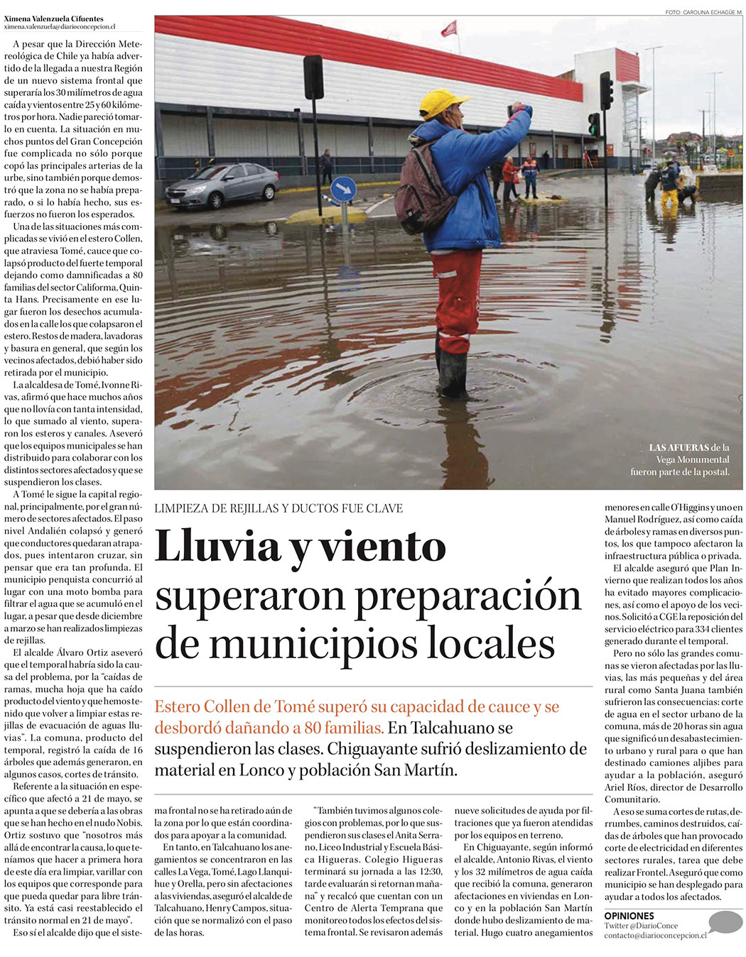 Lluvias generan cortes de energía y suspensión de clases en la zona - (Crónica de Chillán)