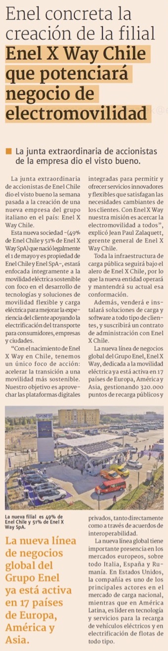 Enel Chile crea filial dedicada íntegramente a la movilidad eléctrica sostenible - (eldinamo)