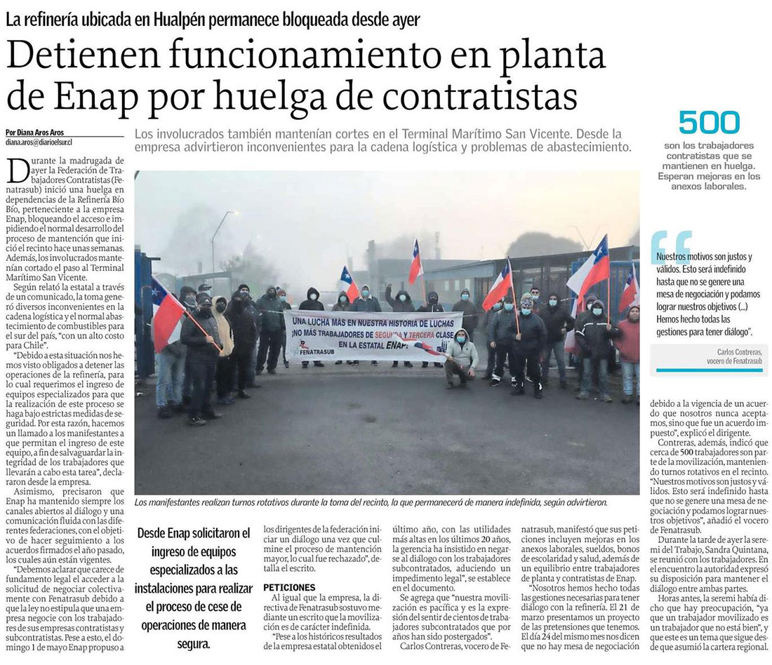 Enap detuvo operación por bloqueo de ingreso - (Estrella de Concepción)