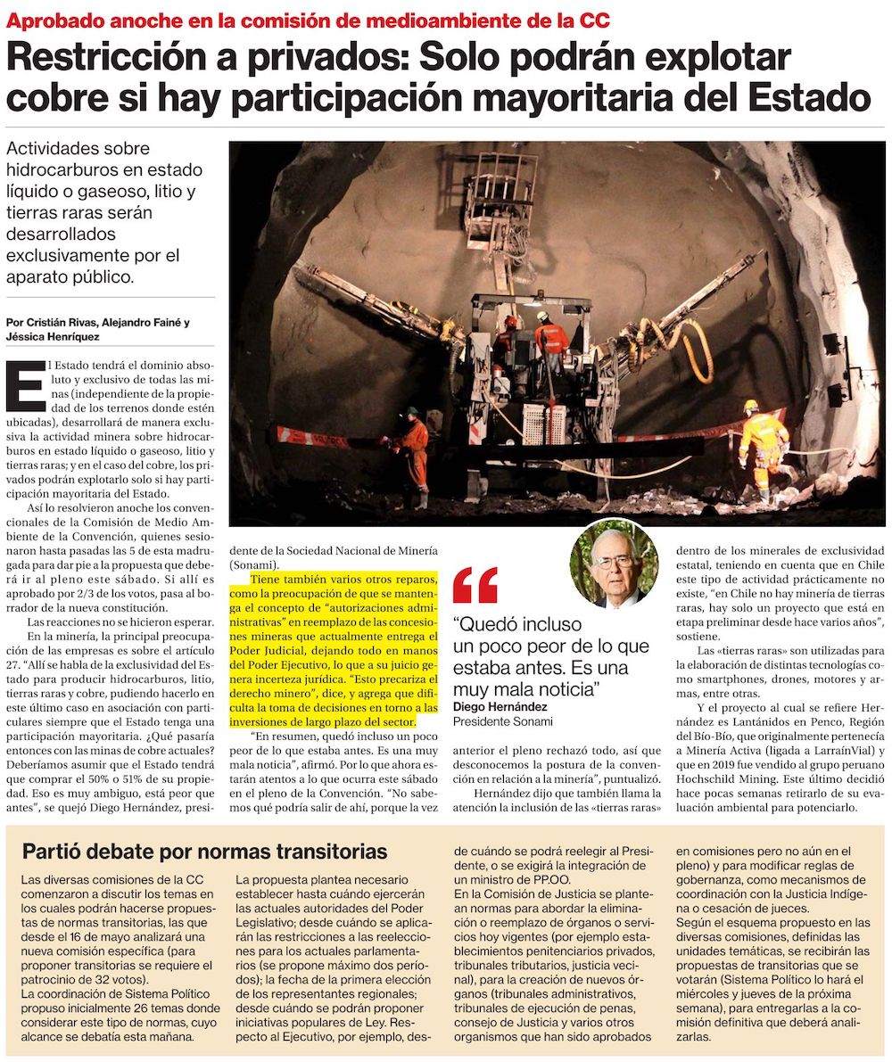 Comisión de Medio Ambiente aprueba normas que supeditan explotación del cobre al Estado - (El Mercurio de Santiago)