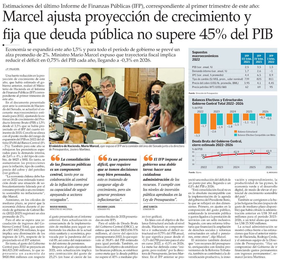 Hacienda asume dos años de freno económico: baja PIB para el año y se abre a escenario de nulo crecimiento en 2023 - (Diario Financiero)