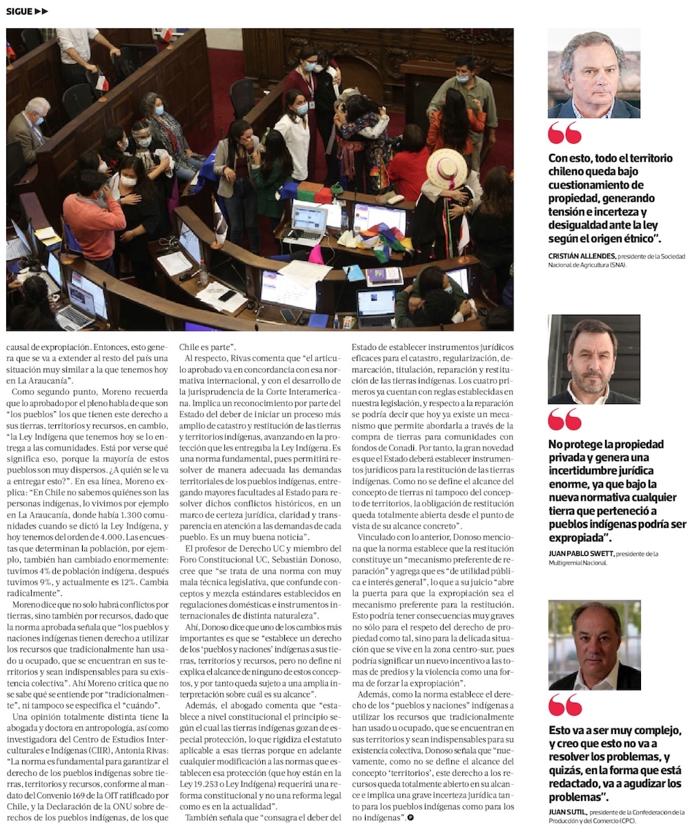 Gremios ven incertidumbre jurídica por derecho de reparación de tierras a pueblos indígenas - (El Mercurio de Santiago)