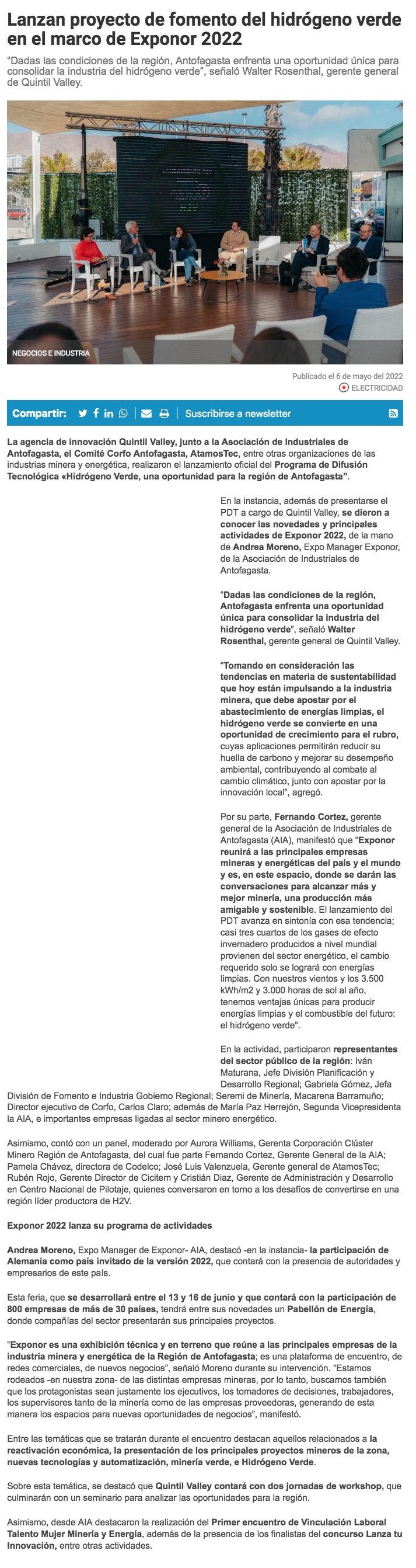 Lanzan proyecto de fomento del hidrógeno verde en el marco de Exponor 2022 - (Maray Online)
