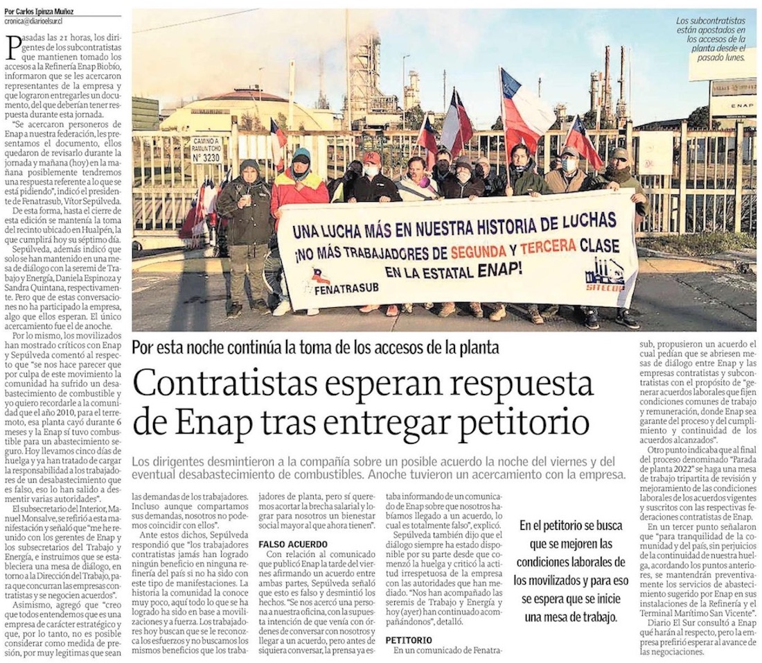 Contratistas y Enap no logran acuerdo: continúan bloqueos - (Estrella de Concepción)
