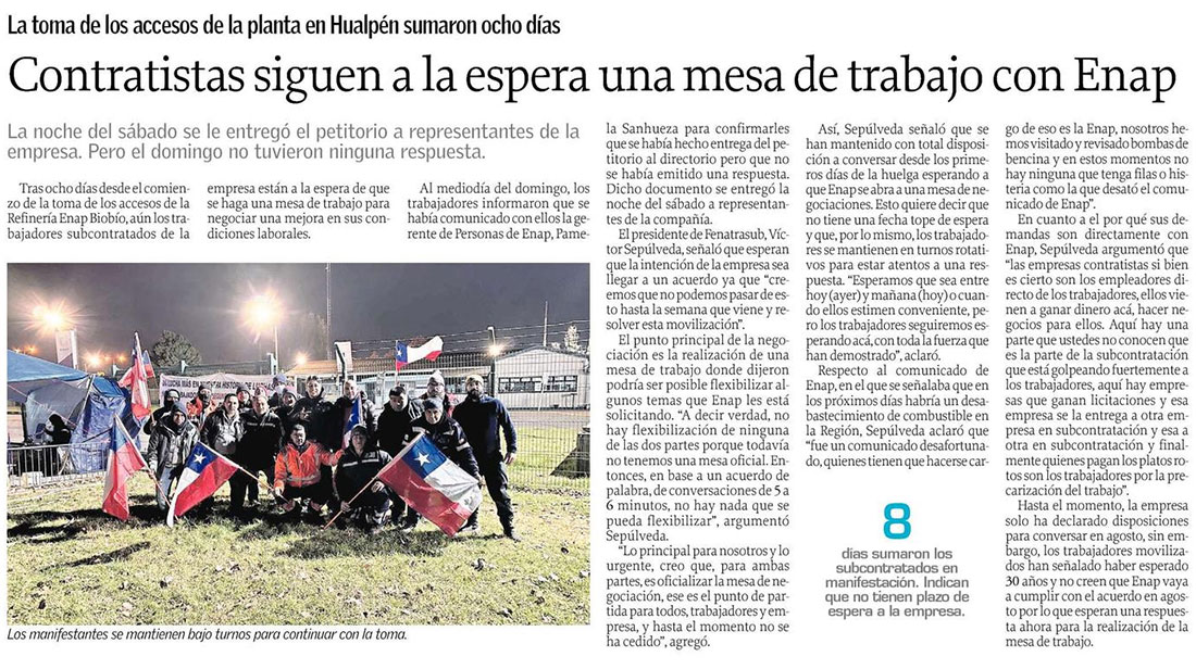 Contratistas y Enap no logran acuerdo: continúan bloqueos - (Estrella de Concepción)