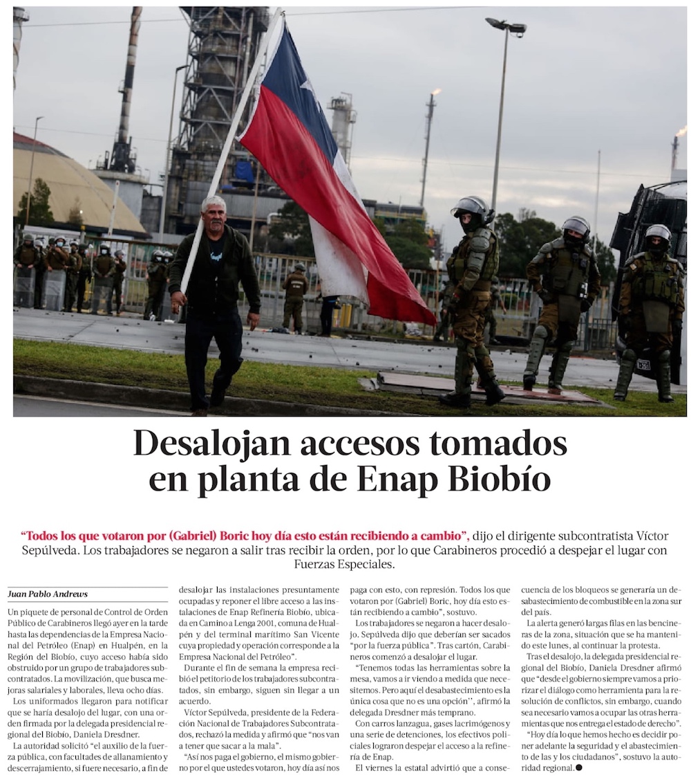 Desalojan ingresos a Enap, pero se mantiene la huelga - (Estrella de Concepción)