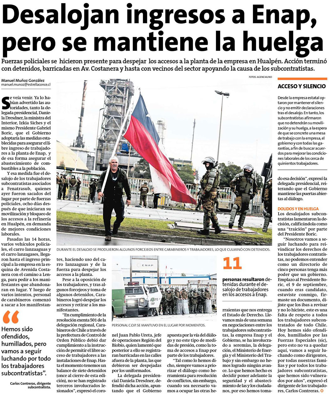 Desalojan accesos a planta de Enap Hualpén: movilización sigue - (Diario Concepción)