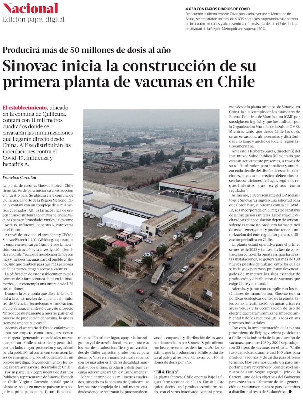 Sinovac y la UC gestionan aprobación de estudios de vacunas contra ómicron e influenza - (Diario Financiero)