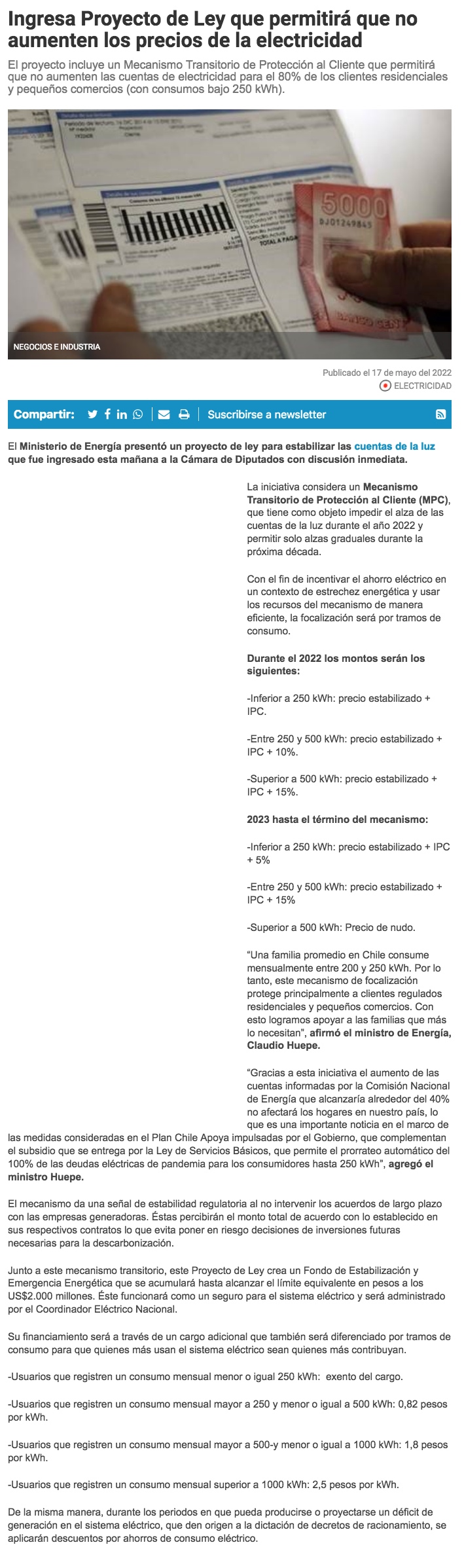Ministerio de Energía presenta proyecto que estabiliza el precio de las cuentas de electricidad - (Estrategia)