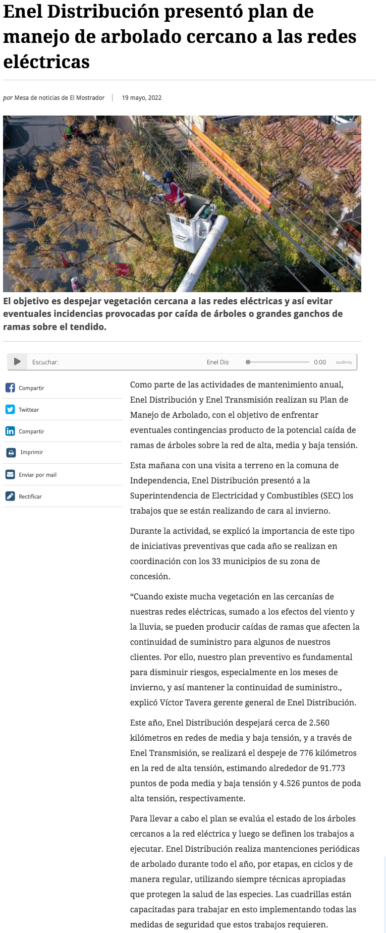 Enel Distribución presentó plan de manejo de arbolado cercano a redes eléctricas - (eldinamo)