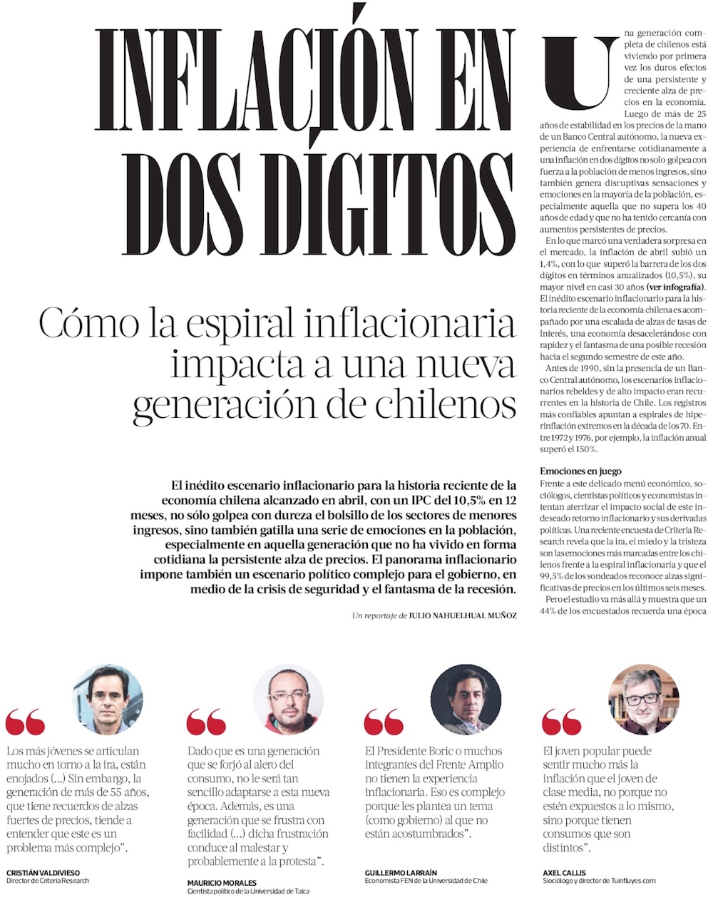 Sorpresas inflacionarias podrían forzar al Banco Central a llevar la tasa de política por sobre el 9,5% - (El Mercurio de Santiago)