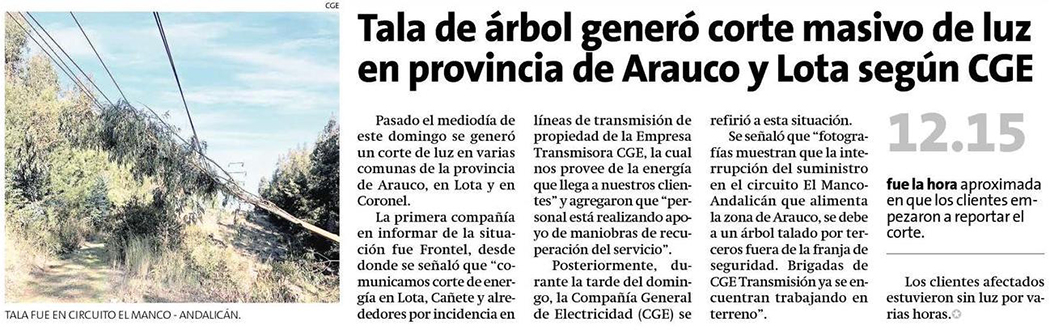 Gerente de CGE confirma que tala ilegal de madera provocó masivo corte en provincia de Arauco y Lota - (biobiochile online)