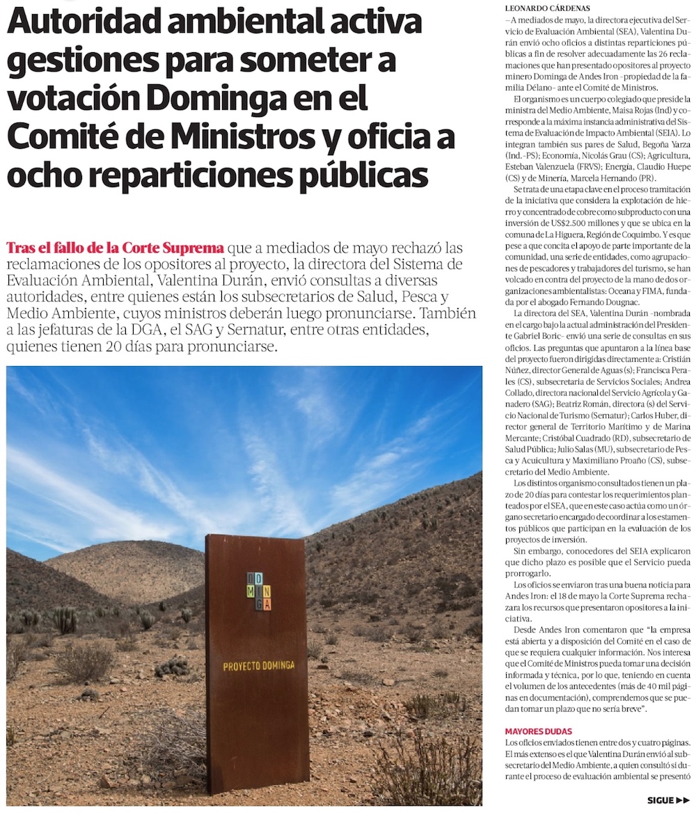SEA inicia ronda de consultas previas a decidir el futuro del proyecto Dominga - (El Mercurio de Santiago)