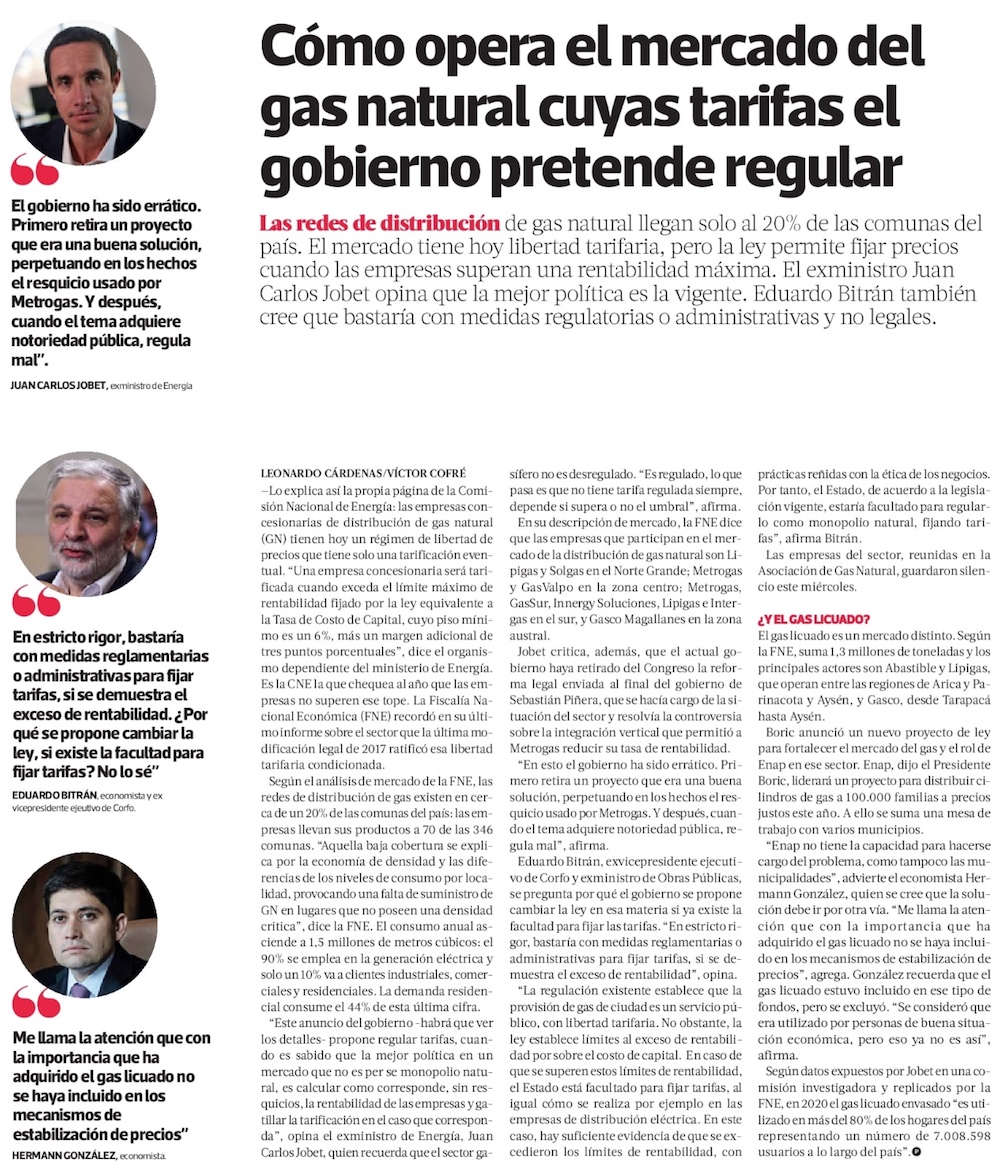 Ejecutivo refuerza las medidas por sobreprecios en el gas natural - (Diario Financiero)