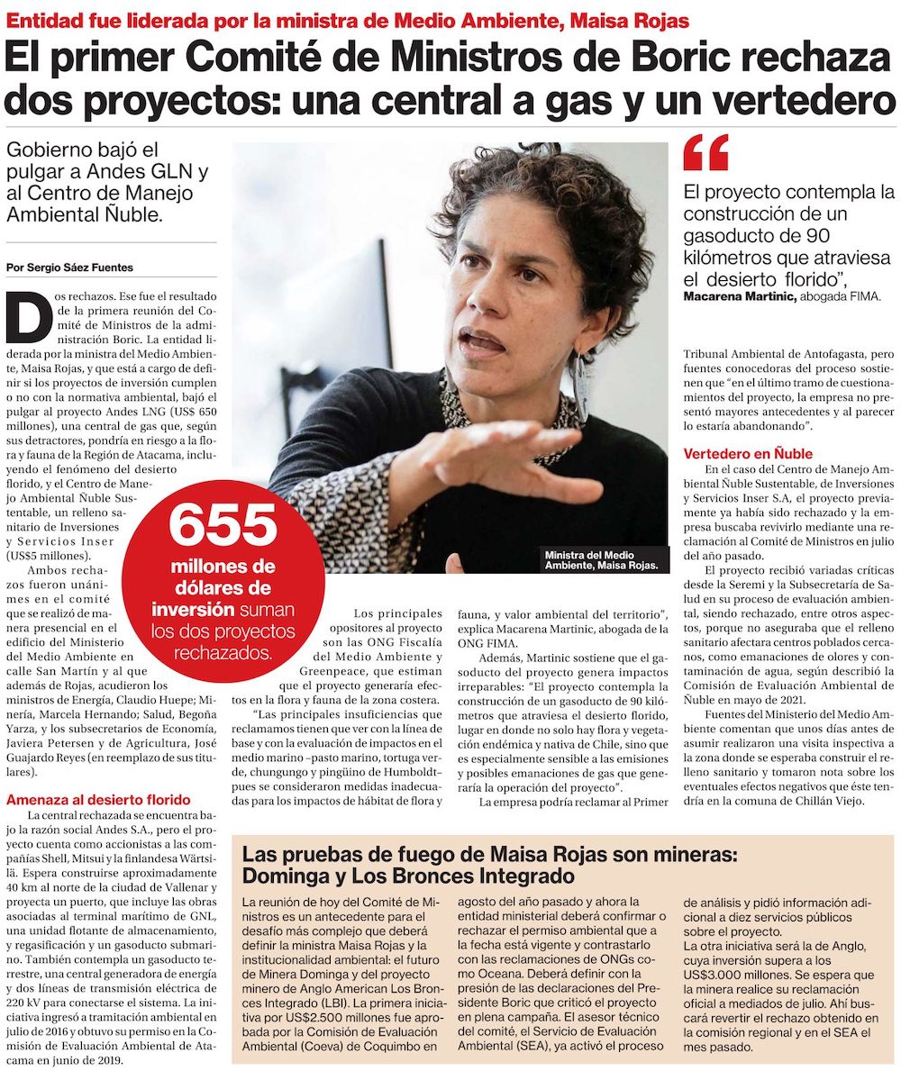 Comité de Ministros rechaza megaproyecto energético Andes LNG: Acumulaba numerosos cuestionamientos ambientales - (elciudadano)