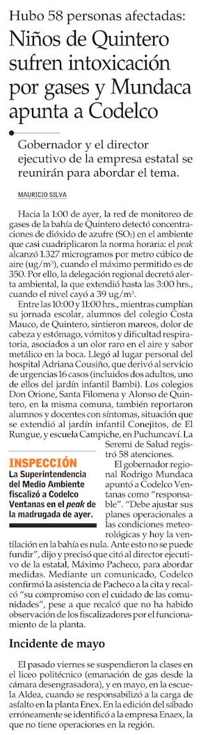 54 niños y 9 adultos con malestares: se investiga relación con peak de SO2 - (Estrella de Valparaíso)
