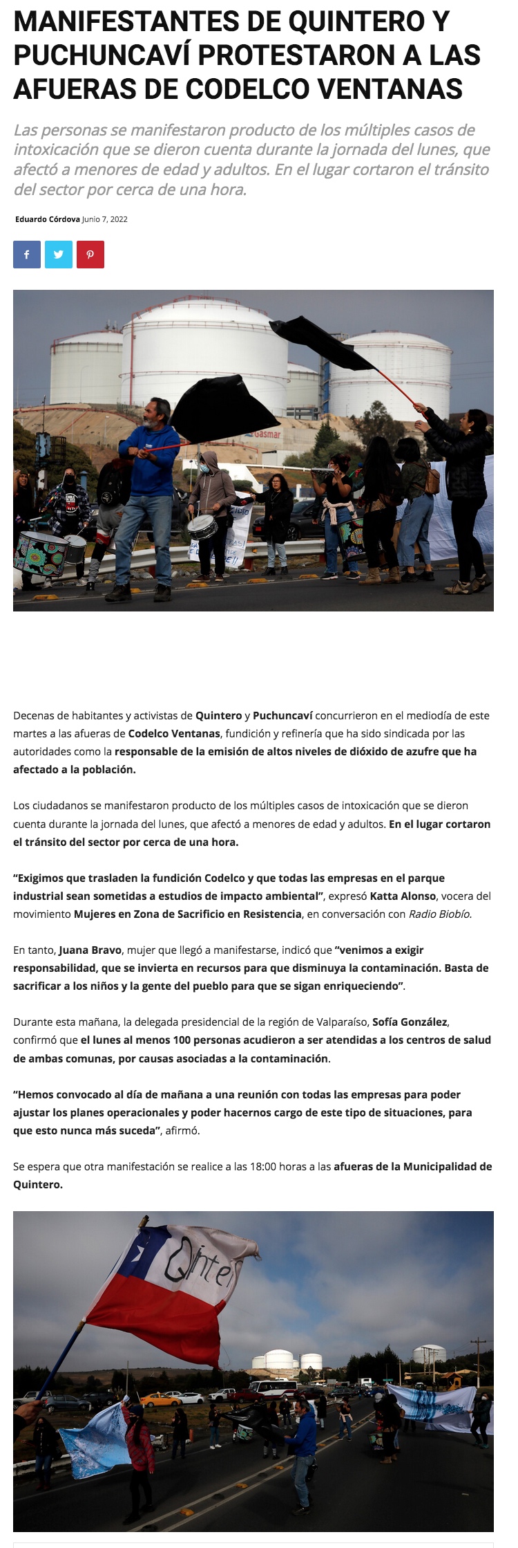 Comunidades piden el fin de industrias contaminantes - (El Mercurio de Valparaíso)