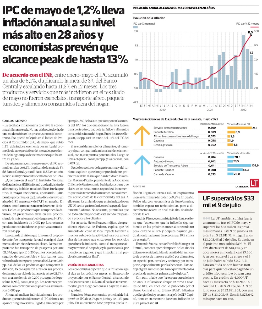 Economistas se alinearon con el diagnóstico del Central y ven el techo del IPC cerca del 13% hacia el tercer trimestre - (Diario Financiero)