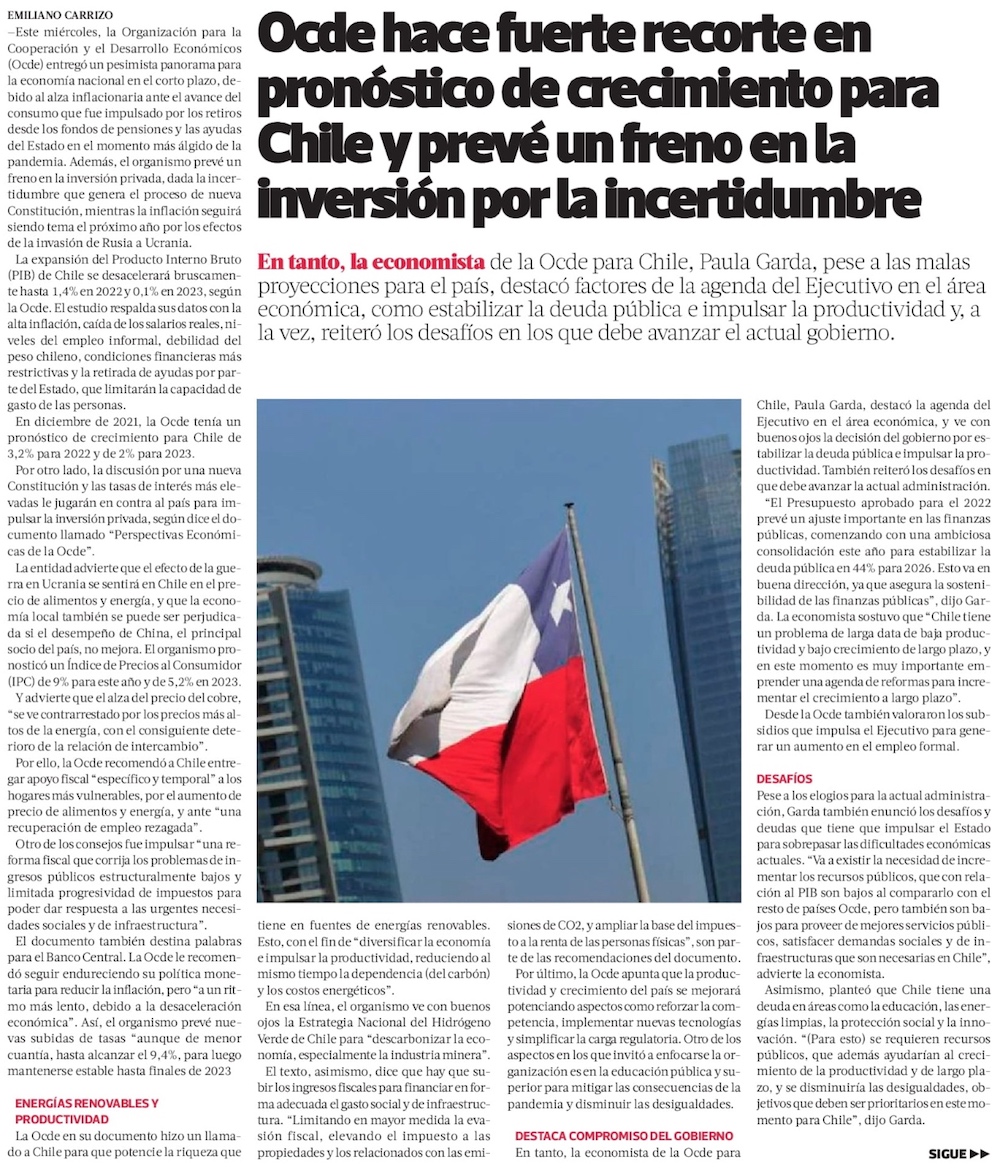 OCDE advierte que incertidumbre constitucional desalienta la inversión - (El Mercurio de Santiago)