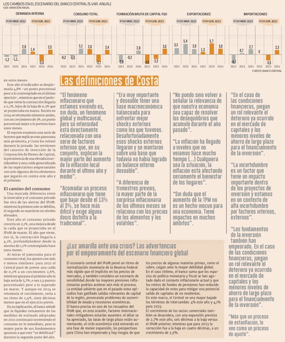 B. Central sube a 10% proyección de inflación este año y expertos ven amenaza de recesión - (El Mercurio de Santiago)