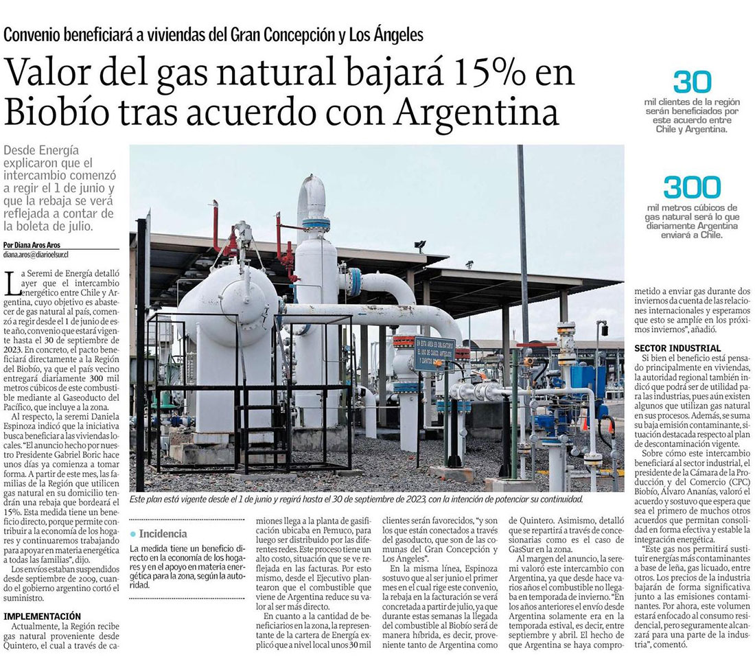 Importación de gas argentino: más de 30 mil clientes en Bío Bío y Ñuble verán rebaja en sus cuentas - (biobiochile online)