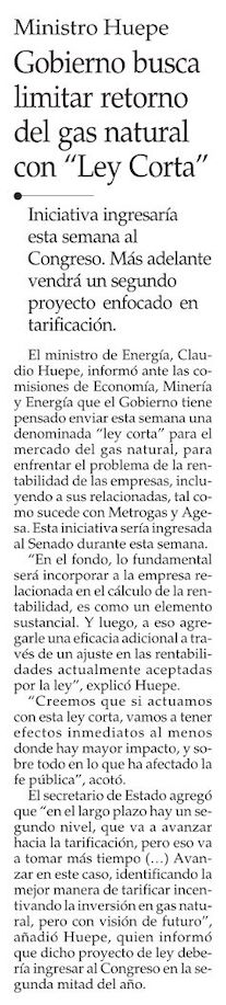 Gobierno anuncia que presentará esta semana una ley corta para abordar la polémica por Metrogas - (Pulso)