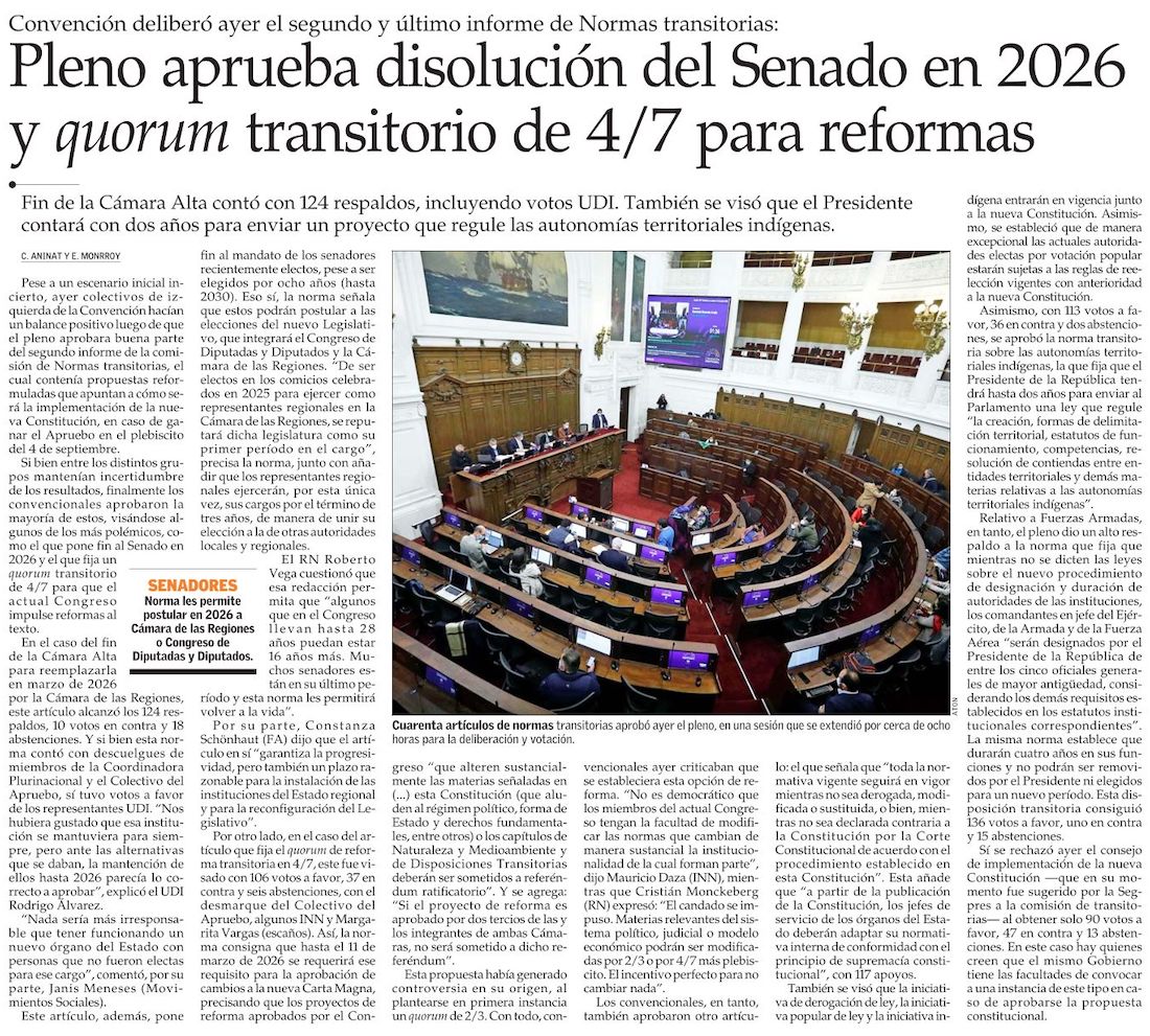 Senado ya tiene fecha de término: Convención aprueba su disolución en marzo de 2026 - (La Tercera)