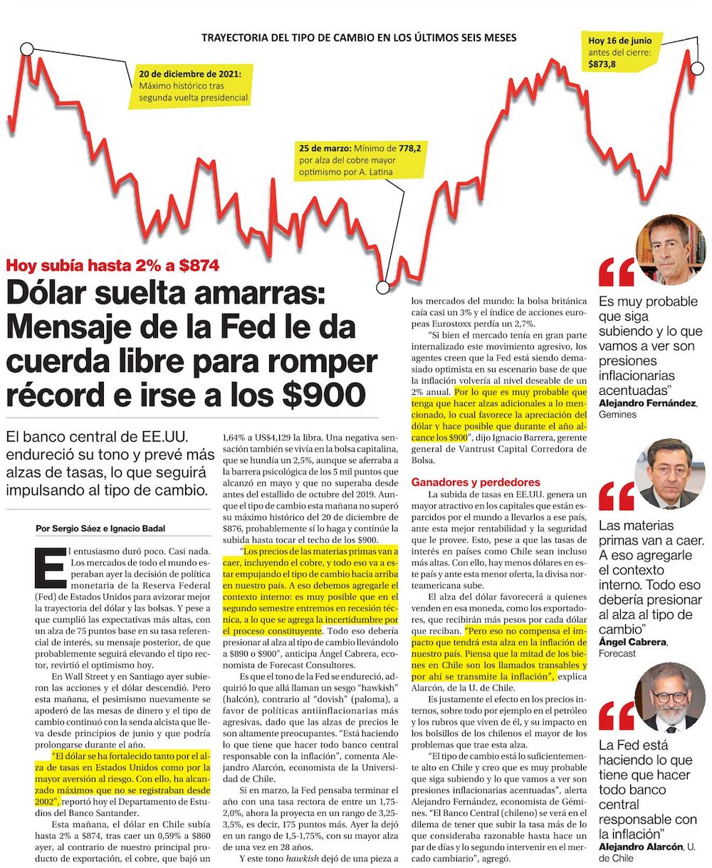 Temores de la recesión se apoderan del mercado y llevan al dólar cerca de los $870 - (Diario Financiero)
