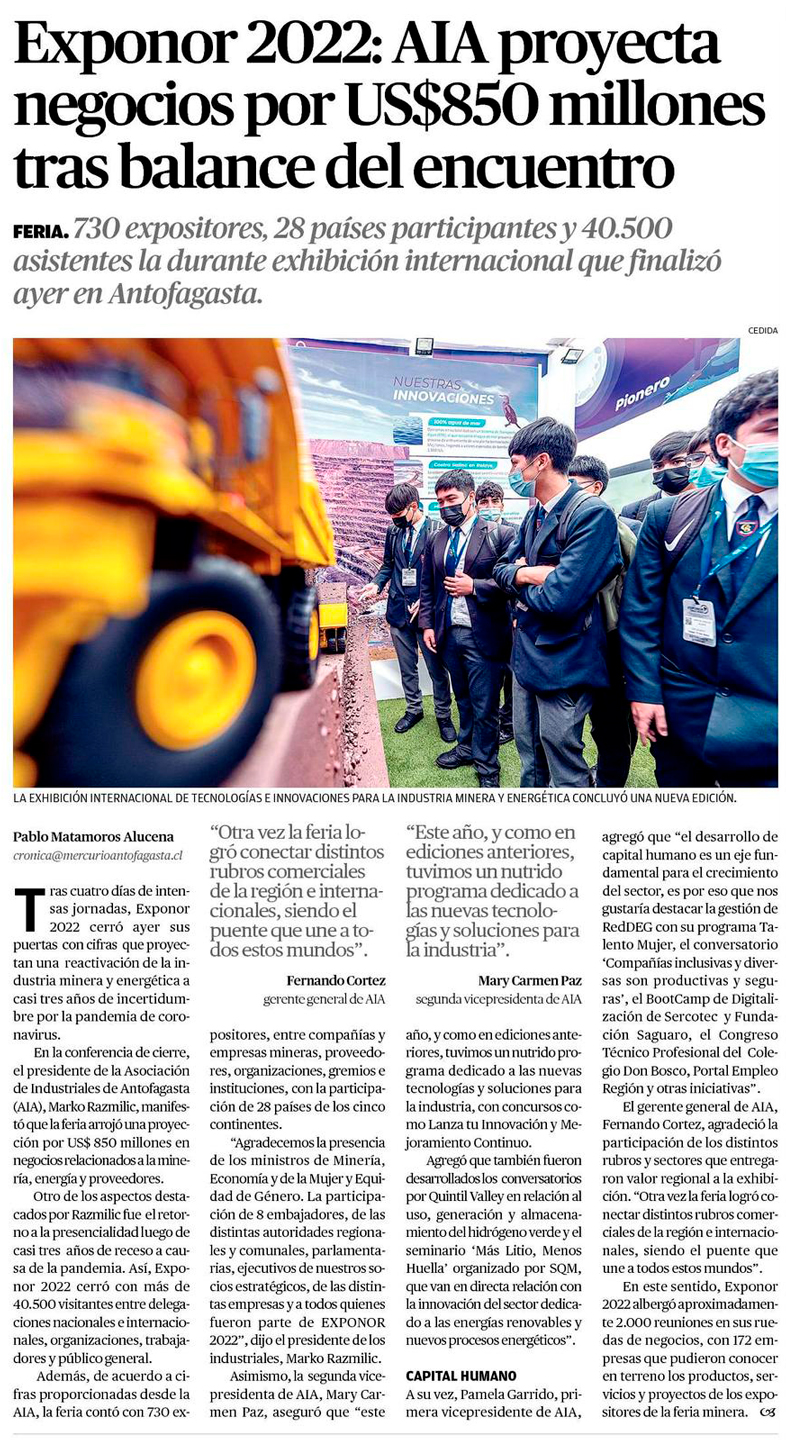 Capital humano, equidad de género y medio ambiente marcan pauta del tercer día de Exponor 2022 - (biobiochile online)