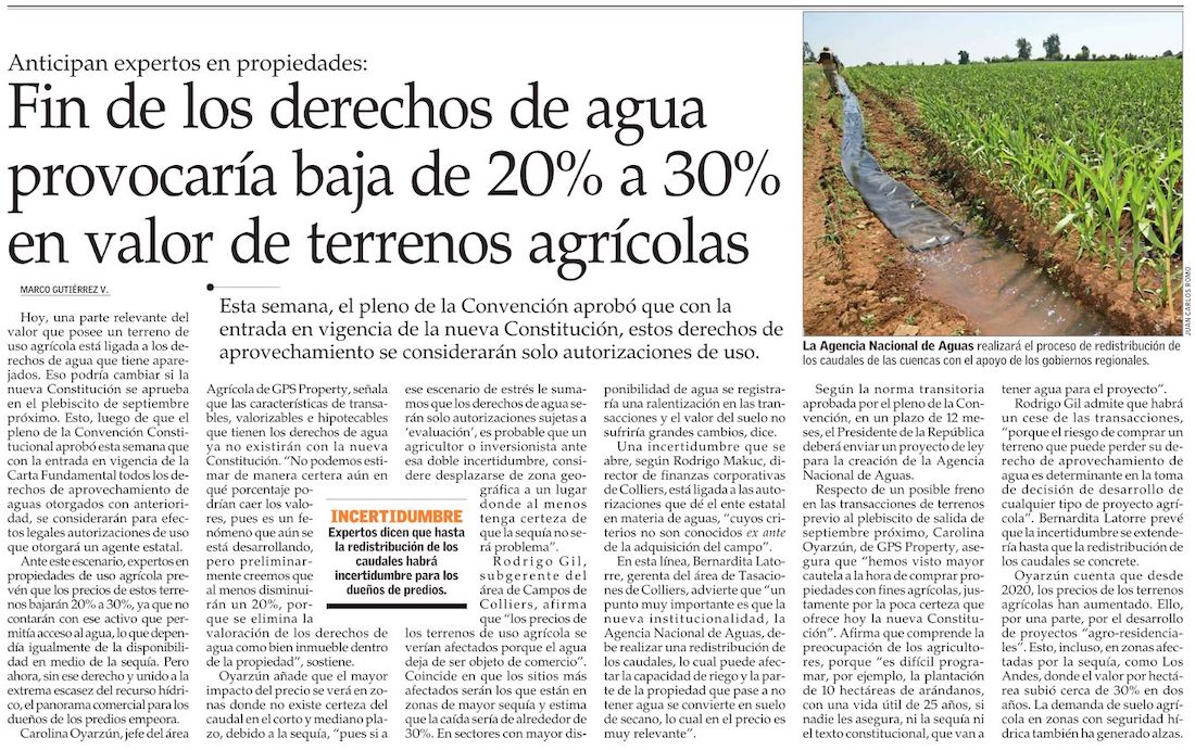 Cambios sobre las aguas disminuirán el patrimonio de los pequeños agricultores - (El Mercurio de Santiago)