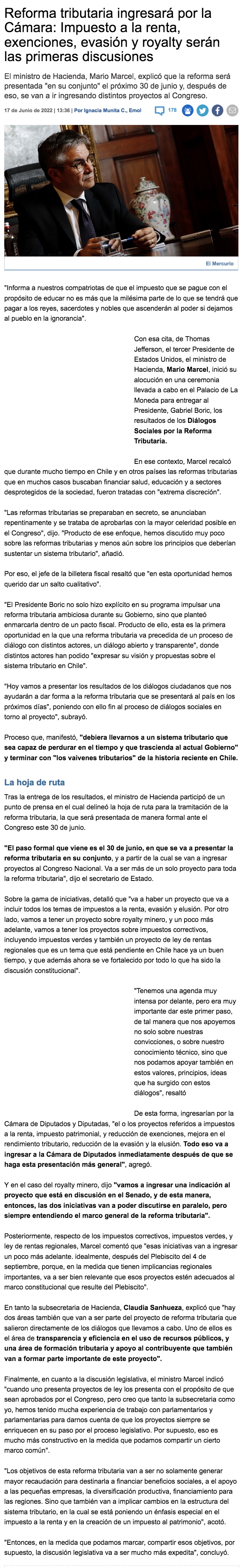 Presidente Gabriel Boric remarca que crecimiento económico y justa distribución de ingresos no son impuestos - (El Mercurio de Santiago)