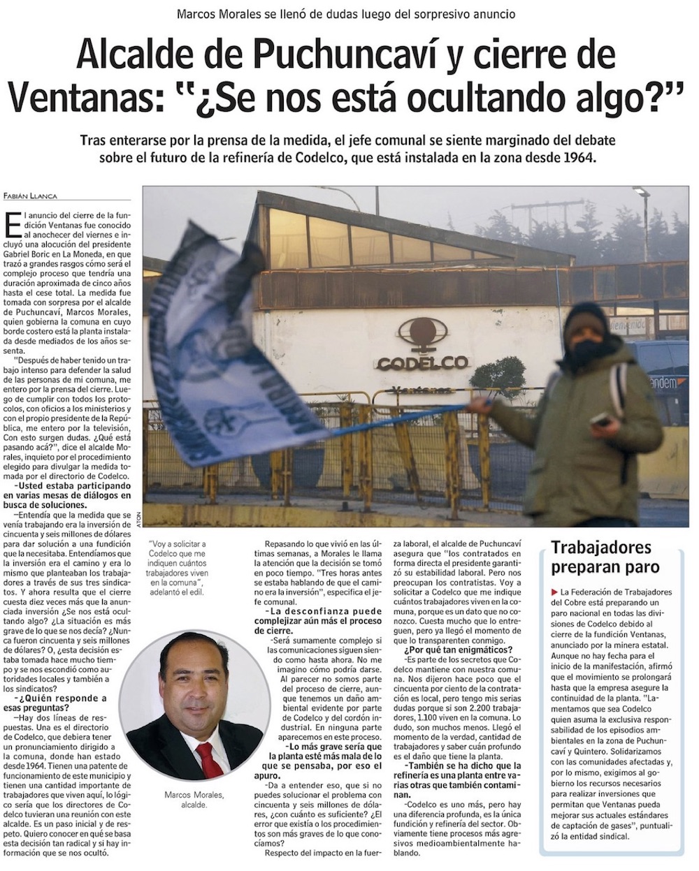 Alcaldes de Quintero y Puchuncaví cuestionan cierre de Codelco Ventanas - (Estrella de Valparaíso)