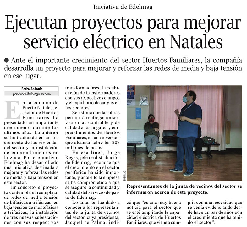 Compañía trabaja en mejorar el servicio eléctrico del sector de Huertos Familiares en Puerto Natales - (cooperativa online)