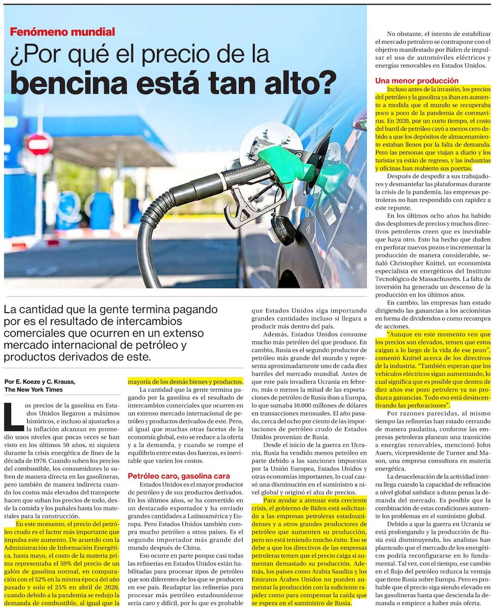 Bencinas suman 45 semanas de alzas, y subidas seguirán por lo menos 4 meses más - (El Mercurio de Santiago)