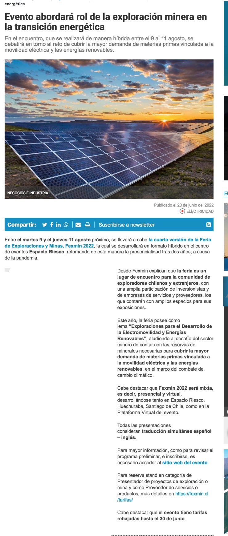 Evento abordará rol de la exploración minera en la transición energética - (electromov.cl)