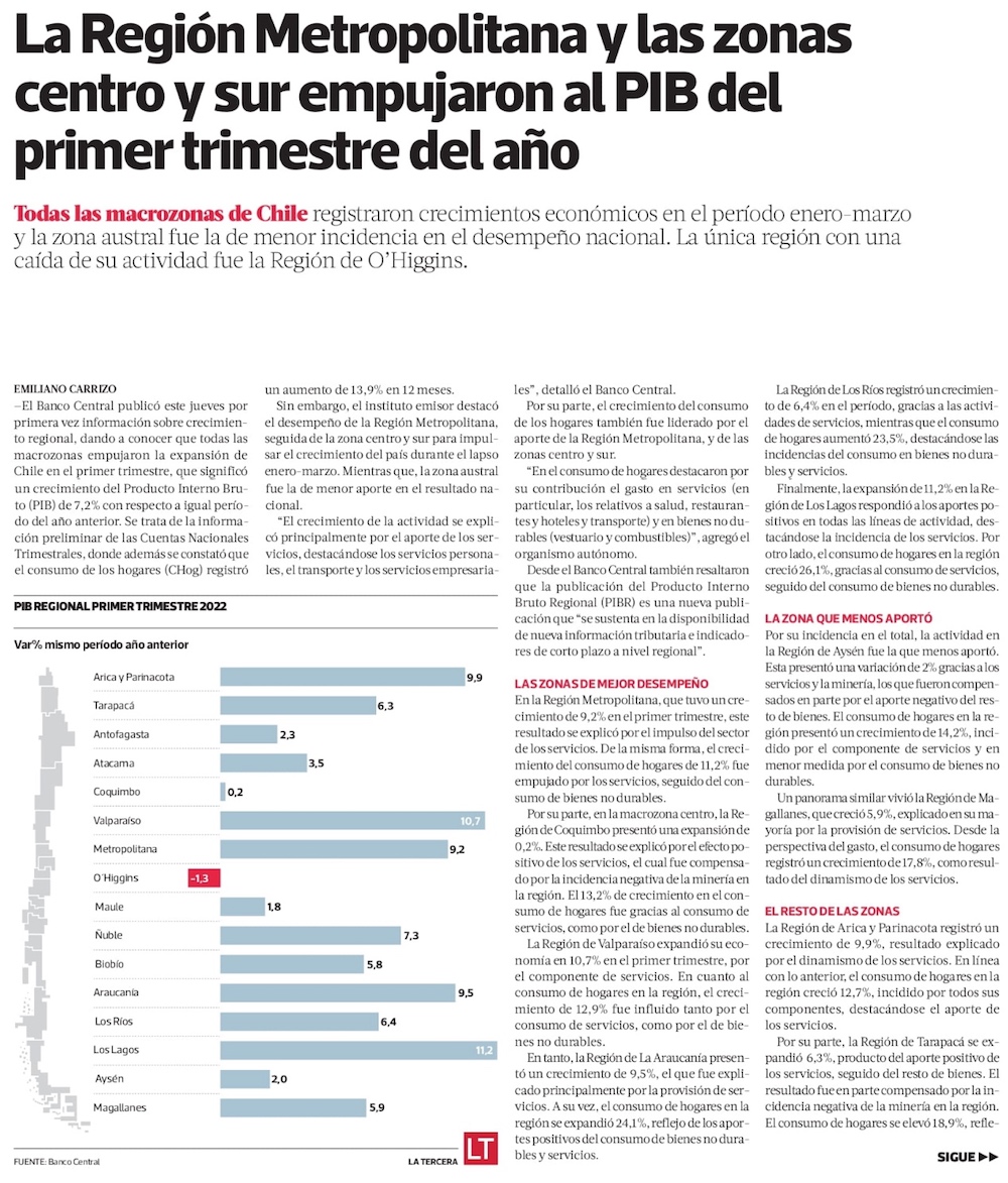 La Araucanía se ubica entre regiones que más crecieron en el I trimestre y Antofagasta lidera en PIB per cápita - (Diario Financiero)