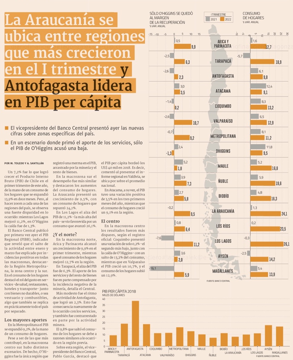 PIB de regiones del centro y sur del país son los que más crecieron - (El Mercurio de Santiago)