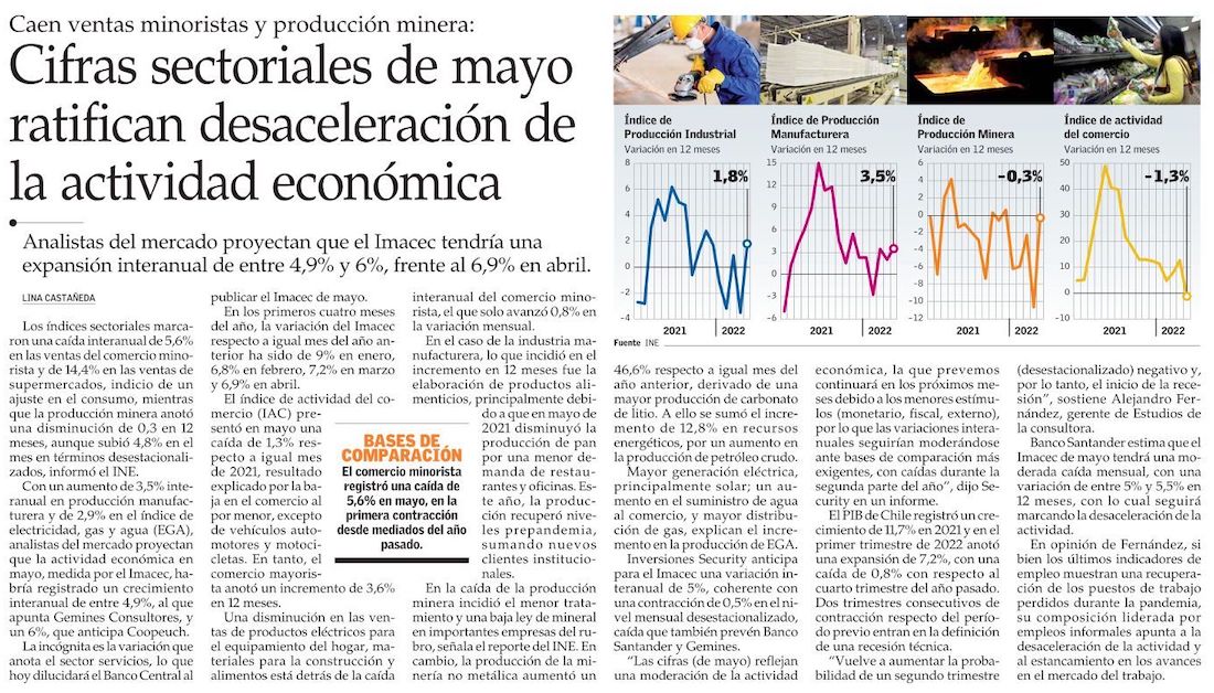 Ajuste del comercio en mayo confirma desaceleración de la economía chilena - (Diario Financiero)