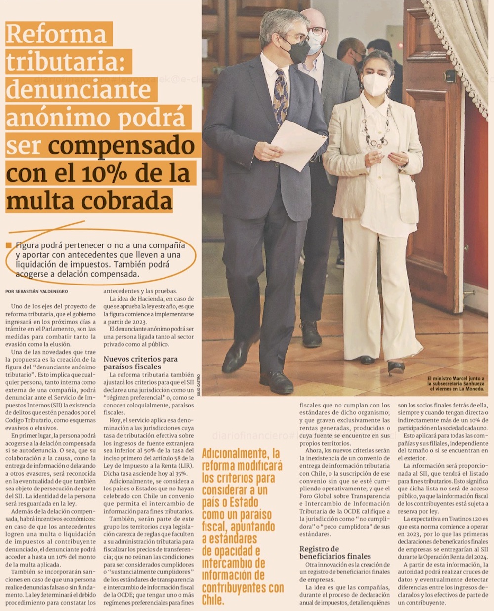 Los riesgos que el mercado financiero ve en la reforma tributaria - (El Mercurio de Santiago)