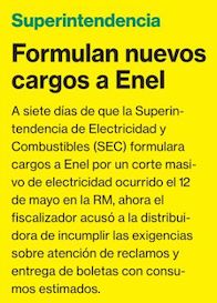 SEC formula cargos a Enel por no atender reclamos y boletas con consumos estimados - (Diario Financiero)